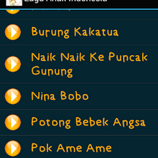 Lagu anak-anak Indonesia, sebuah aplikasi kumpulan MP3 lagu anak Indonesia terpopuler yg abadi sepanjang masa. Pas untuk anak usia paud maupun TK. Setelah di download dan install, aplikasi lini tidak memerlukan koneksi internet untuk mendengarkan kumpulan lagu-lagu anak yang ada didalamnya.